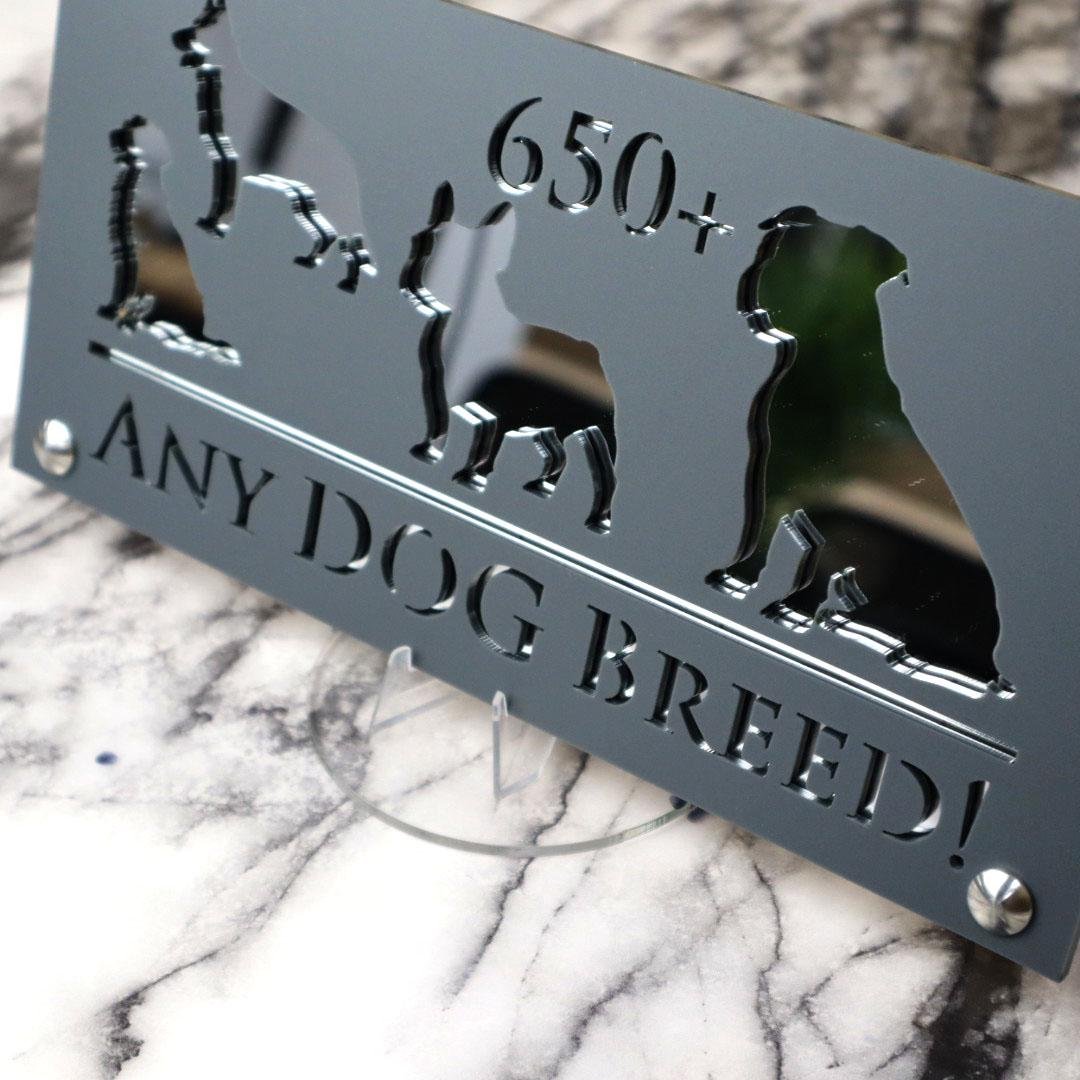 Introducing Dog Luxe A4: Elevate Your Home with Elegance YOU CAN HAVE ANY DOG BREED YOU WANT ON THIS SIGN – We have an extensive database with over 650 dog breeds. Just let us know your preferred breed, your house number, and your street name.