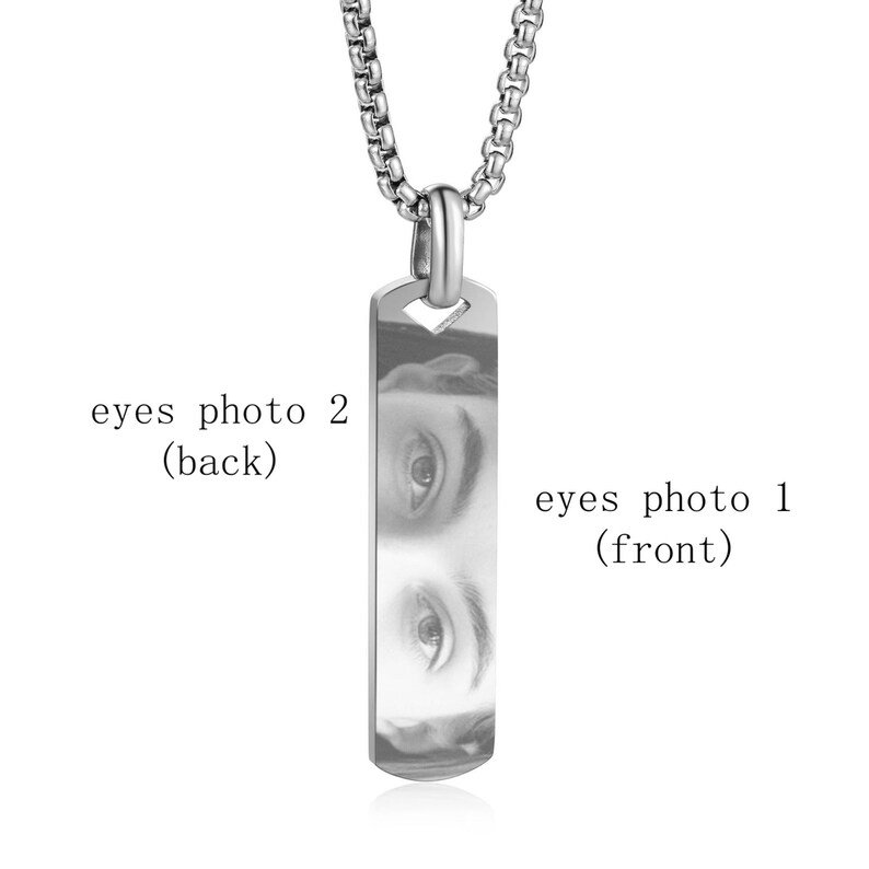 ★ This personalized eye photo necklace is a truly unique and meaningful piece of jewelry that captures a special memory in a beautiful way. With options in silver, black, and gold, you can choose the color that best suits your style and the recipient’s preferences. The centerpiece of the necklace features a detailed engraving of your own eye photo, making it an intimate and personal gift that symbolizes a deep connection with the person receiving it.